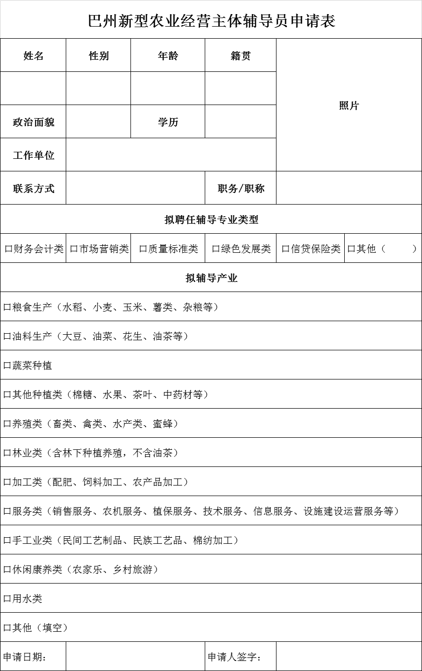 有意愿应聘的申请人于2月28日前将加盖单位公章的《附件1:附件2:巴州新型农业经营主体辅导员申请表》(见附件),以及身份证、学历证明、相关专业技术证明等佐证材料(复印件)交至县农业农村局102室,电子件发至联系人邮箱。