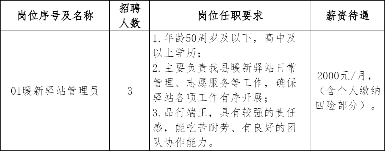 因工作需要,中共吉水县委社会工作部经研究决定面向社会公开招聘3名暖新驿站管理员。现将有关事项公告如下: