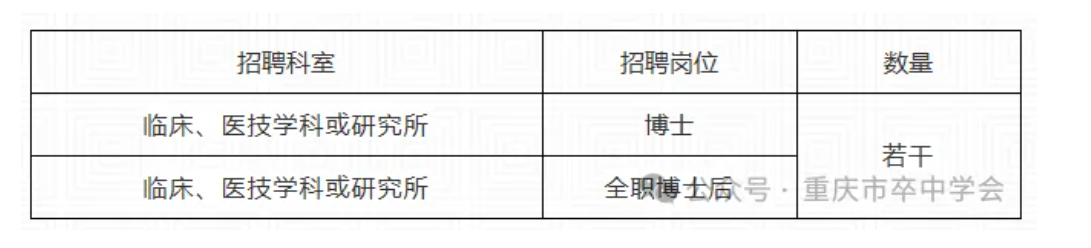 5.博士后需要满足医院博士后招聘条件。具体条件详见链接https://mp.weixin.qq.com/s/S29r5vxR5Gj8JGnNYbpLuw。