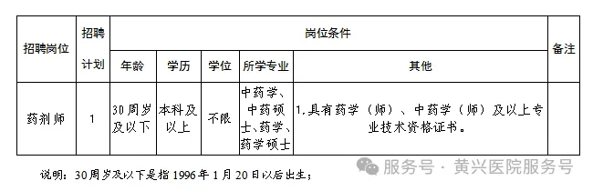 因工作需要,黄兴医院现面向社会公开招聘编外合同制岗位1名,具体要求如下: