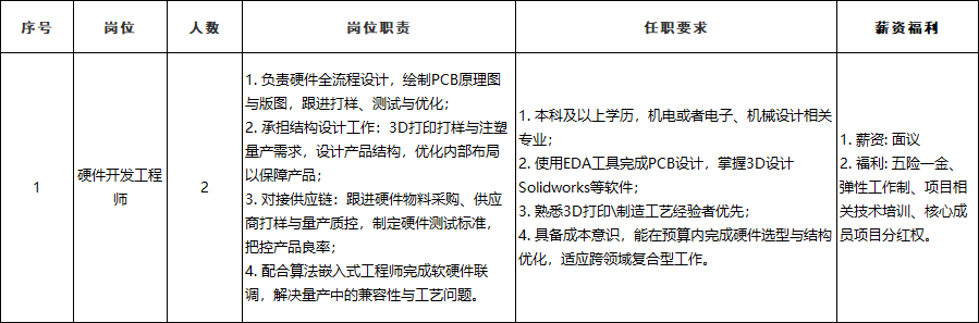 公司因业务发展需要,现招募2名硬件开发工程师,共同完成公司业务,相关招聘要求如下: