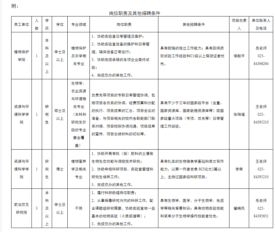 南京农业大学坐落于钟灵毓秀、虎踞龙蟠的古都南京,是一所以农业和生命科学为优势和特色,农、理、经、管、工、文、法学多学科协调发展的教育部直属全国重点大学,是国家“211工程”重点建设大学、“985优势学科创新平台”和“双一流”建设高校。经研究,现公开招聘科研助理6名。