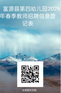 报名方式:采用网络报名。有意向者可识别二维码登记报名信息由幼儿园进行资格初审,通过初审人员将以电话形式通知面试,并在面试过程中进行资格复审,一旦发现不符合报名条件或弄虚作假者立即取消报名资格。