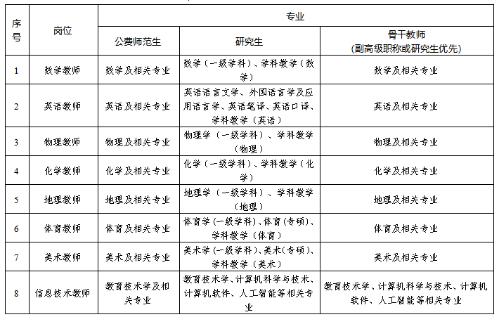 注:各学科招聘人数,学校根据实际需求情况确定。