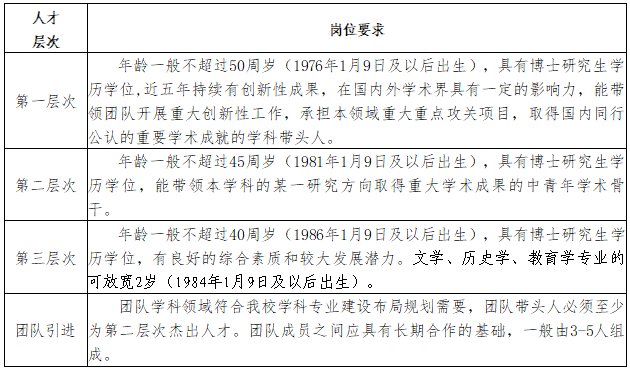 (一)引进人才层次