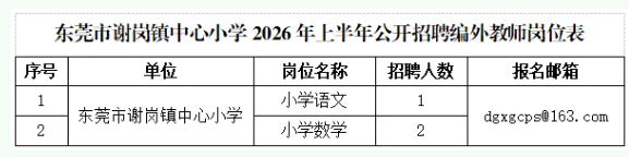 东莞市谢岗镇中心小学公开招聘3名编外教师通告