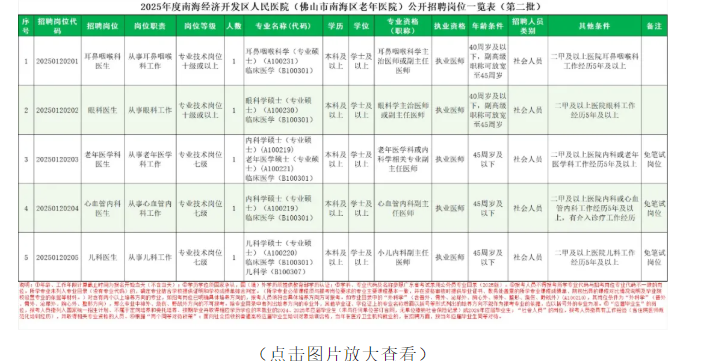 8.具备报考岗位所需其他条件。具体见2025年度南海经济开发区人民医院(佛山市南海区老年医院)公开招聘岗位一览表(第二批)。