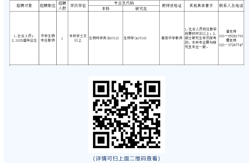 现面向社会公开招聘中学生物专任教师1名。欢迎有志之士加入天外大家庭,共创教育新篇章。