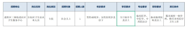 本次招聘全坑村卫生站从业人员1名。