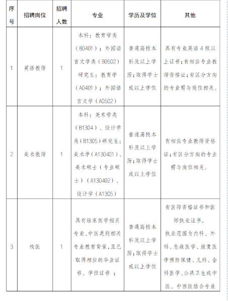 因学校发展需要,经集团研究,决定面向社会公开招聘教职工3名。现将有关事项公布如下: