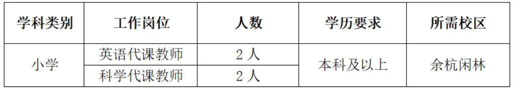 岗位:小学英语教师、小学科学教师