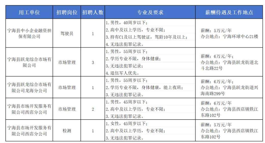 宁海县启拓人力资源服务有限公司受宁海县国有资产投资控股集团有限公司委托拟面向社会招聘派遣制工作人员8名。现将有关招聘事项公告如下: