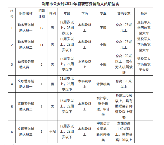 浏阳市公安局2026年1月招聘警务辅助人员公告