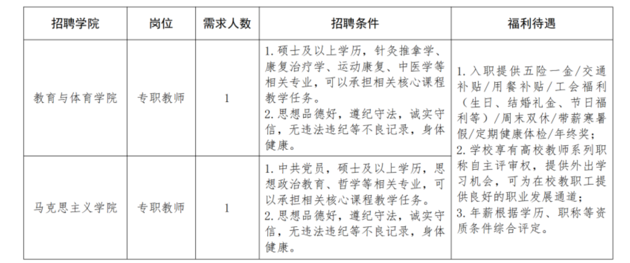 因学校发展需要,现面向社会公开招聘以下专业优秀人才,竭诚欢迎各界英才加入我校。招聘岗位如下: