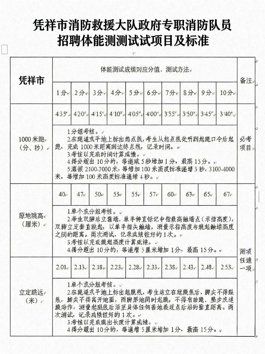 (二)面试:体能测试合格后的考生进入面试(面试采取面谈方式)。(三)考试时间:以具体通知为准。(四)考试成绩:战斗员、驾驶员按照体能测试成绩70%+面试成绩30%计算总成绩。根据总成绩排名按1:1的比例确定体检对象。