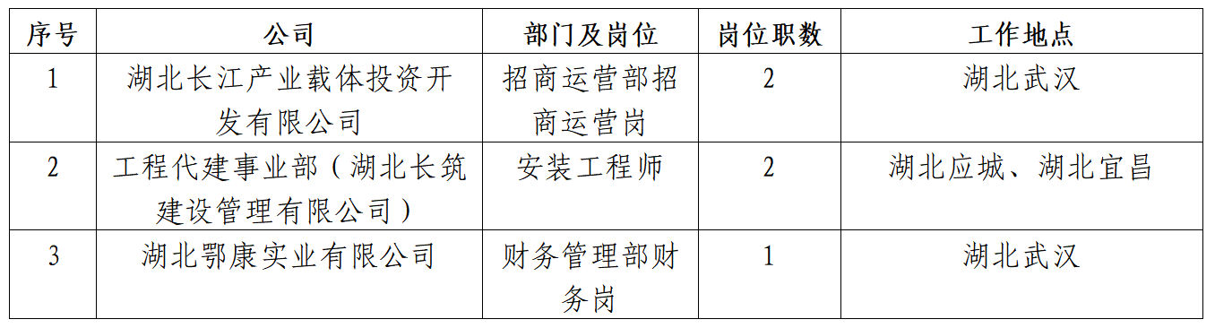 具体资格详见《湖北长江产业载体投资开发有限公司社会招聘需求表》(附件1)