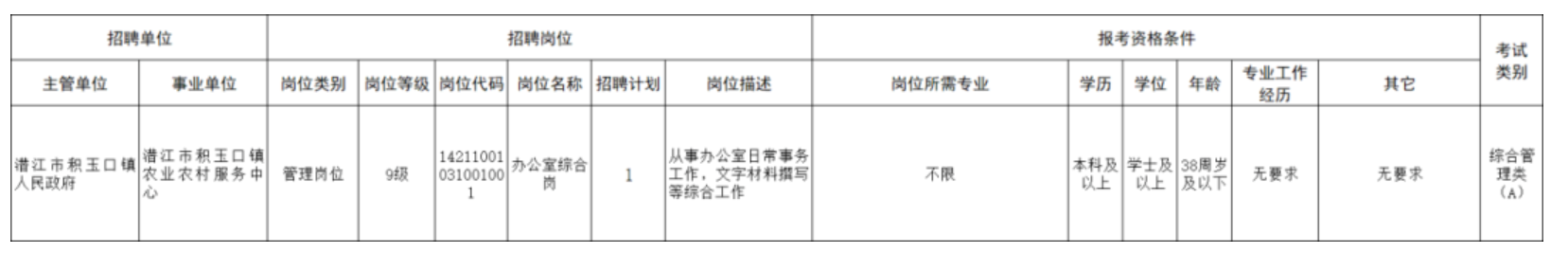 招1人!潜江市积玉口镇农业农村服务中心拟公开招聘事业单位工作人员1名