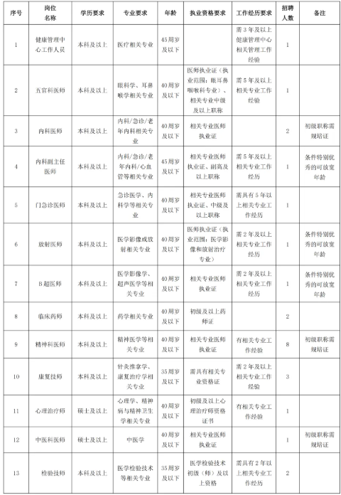 4.年龄应在18周岁以上(2007年12月以前出生)。具体岗位年龄限制见招聘岗位表,具有副高级专业技术职称、取得博士学位的应聘人员年龄可相应放宽;