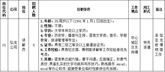 (二)本次招聘人员由龙岩博物馆根据工作需要安排工作岗位、工作地点,被录用人员应当服从安排和调配。