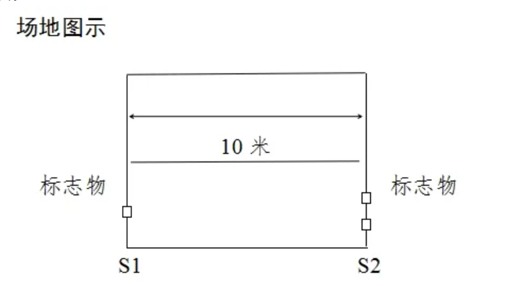 注意事项:测试时有以下任一情况,不计取成绩:出发时抢跑;折返时脚踩S1或S2线;折返时未推倒木块。
