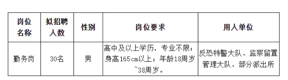 5.本次招聘因岗位勤务特殊性原因,限男性。