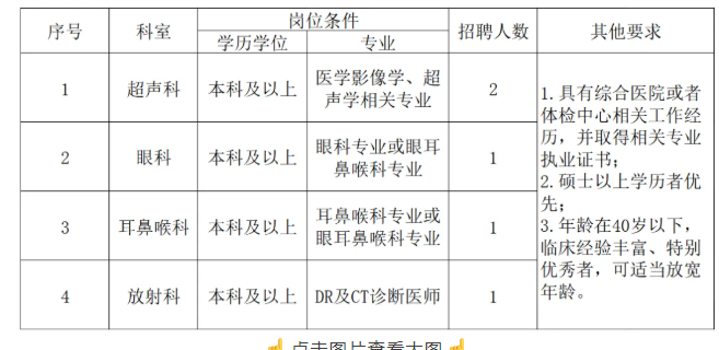 因业务发展需要,我院现面向社会招聘成熟人才,具体要求如下: