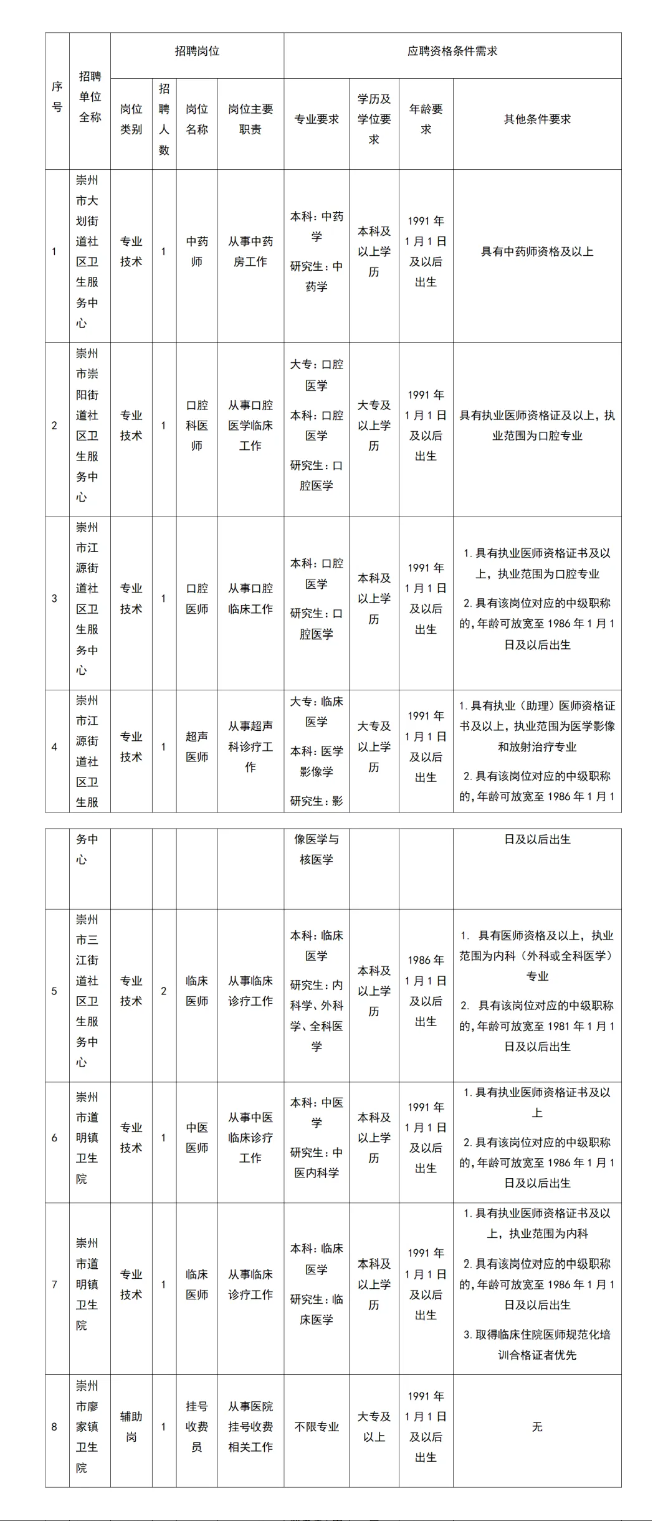 根据科室设置和发展需要,按照公开、平等、竞争、择优的原则,崇州市人民医院医共体成员单位面向社会公开招聘人才。本次招聘为医共体各成员单位自主招聘,招聘的人员为合同制人员,现将有关事项公告如下: