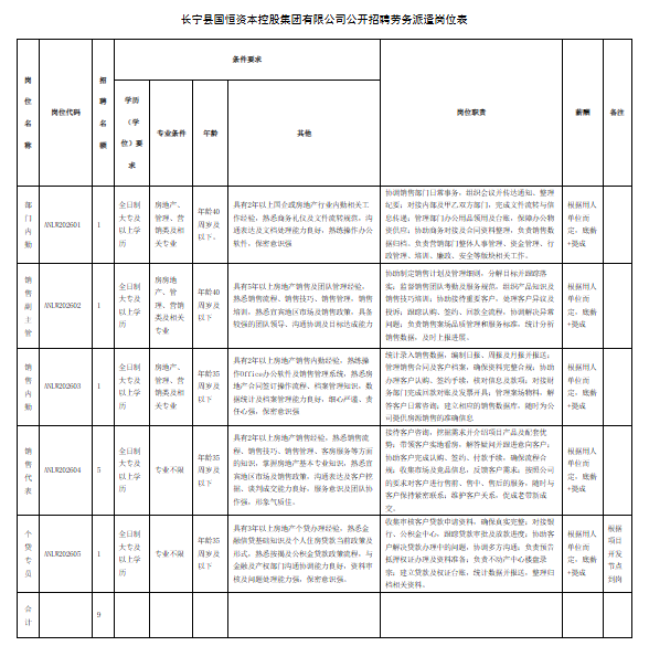 为满足公司经营发展需求,长宁县国恒资本控股集团有限公司(以下简称:国恒集团)为其下属子公司长宁国恒安宁置业有限公司按照公开、平等、竞争、择优的原则,面向社会公开招聘工作人员以及劳务派遣岗位人员,公告如下。