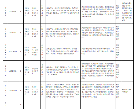 本次招聘名额为正式人员12人(附件1),劳务派遣9人(附件2),具体岗位情况及任职条件详见附件。