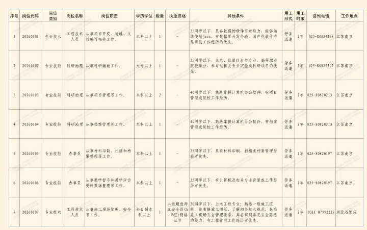 招聘若干人7个岗位